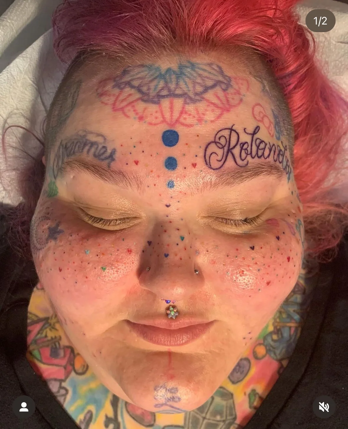 Check out these cute colorful rainbow freckle tattoos by Dani! Era, our apprentice, does regular skin-toned freckles but if you want something vibrant come book with Dani! She even does infared ones too!! This set even had a few hearts sprinkled in.