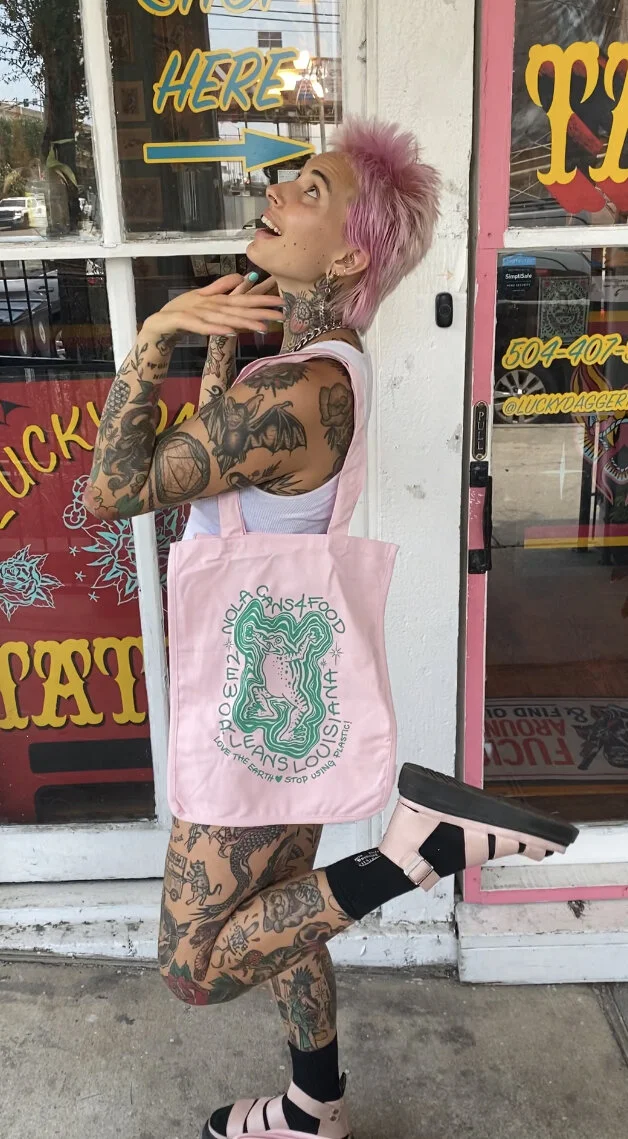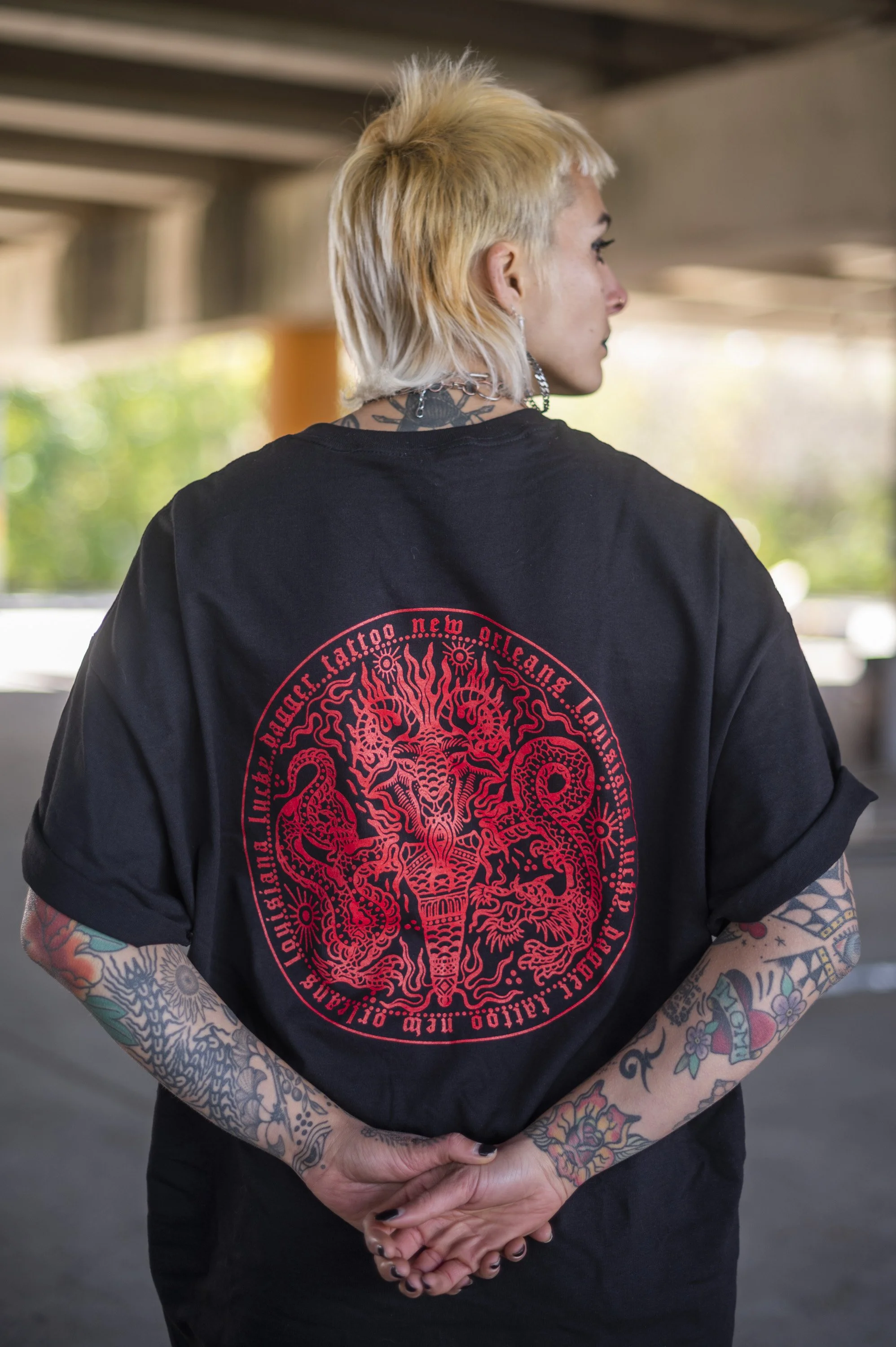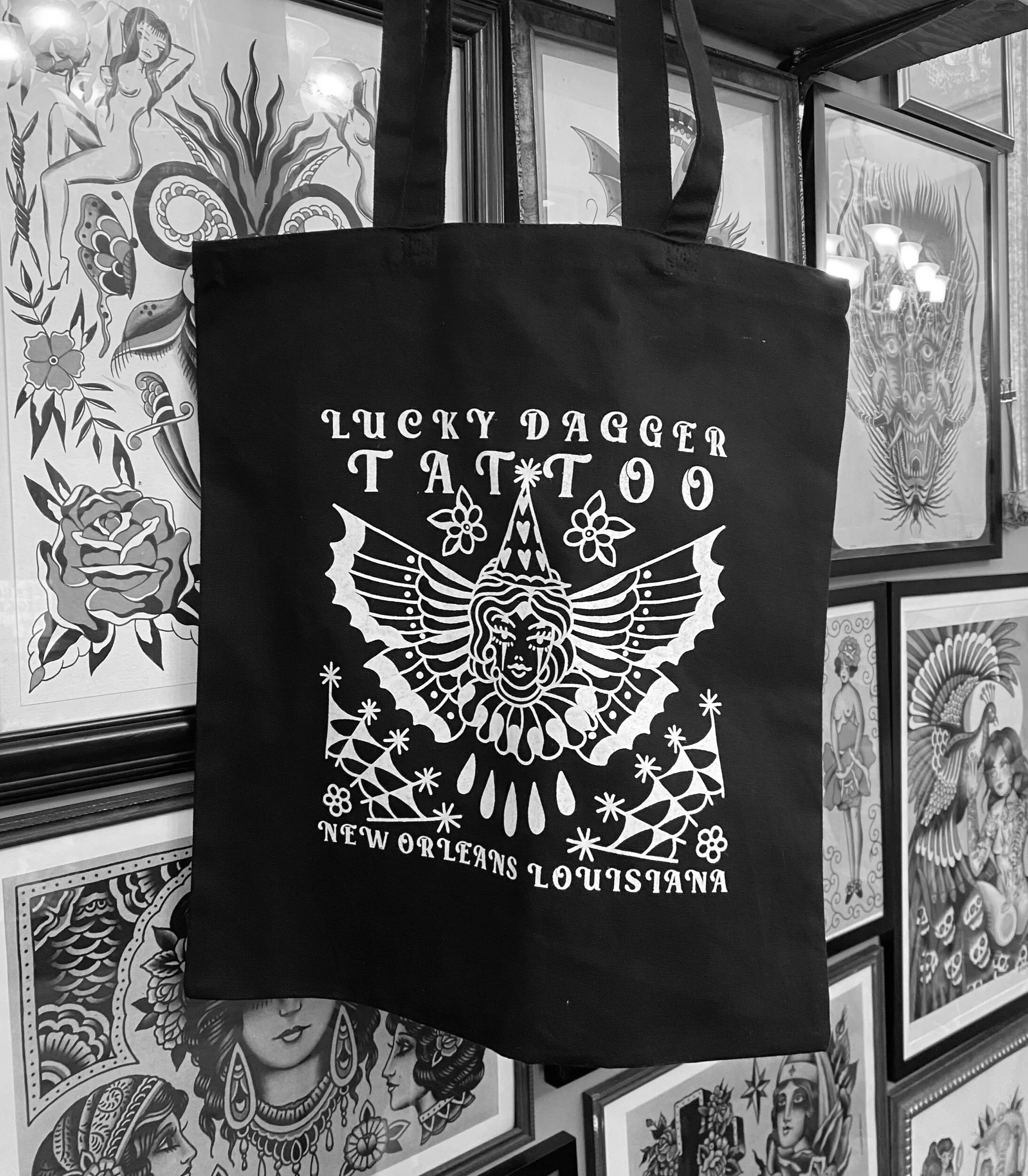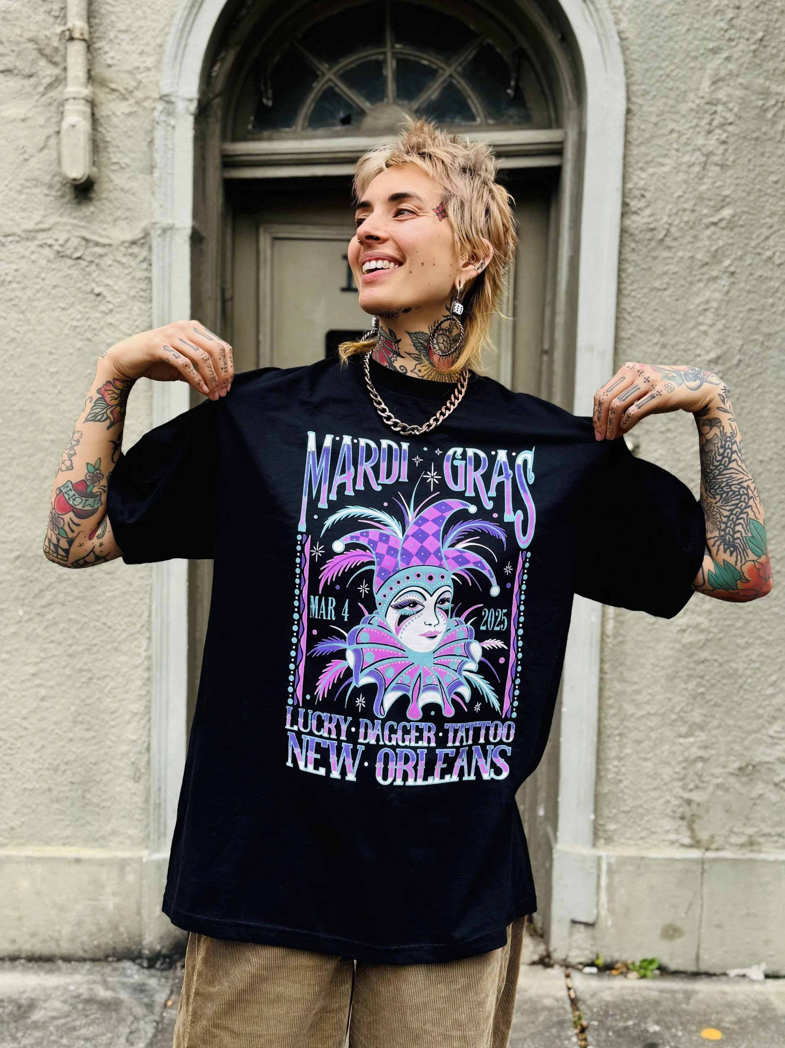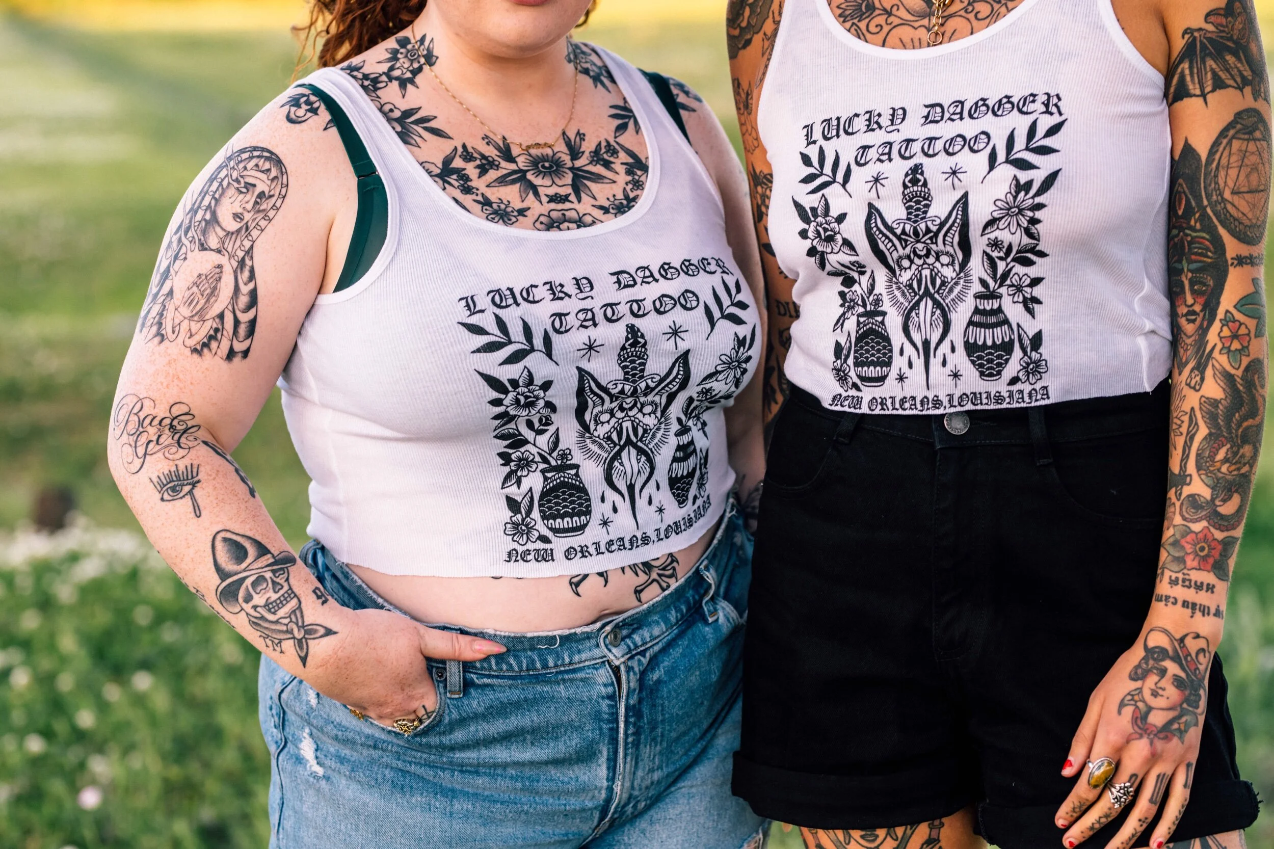 STORE 2025 BOOTY SHORTS $45.00 Jazz Tee $30.00 Vintage Style Mardi Gras Shirt (Classic Mardi Gras Colors) $30.00 Vintage Style Mardi Gras T- Shirt (Orange and turquoise) $30.00 Vintage Style Mardi Gras Tee (Pink and Teal) $30.00 Sacred Heart Hoodie $50.00 Lucky Dagger Snake/Dragon Tee $25.00 Scorpion Dolphin Shorts Sale Price: $20.00 Original Price: $30.00 Sold out Unisex Cobra Hanes Tank $30.00 11x15” JR Snake & Fan Print (*sliding scale*) from $25.00 Lucky Dagger Shorts $45.00 Lucky Dagger Sweat Pants from $40.00 Sale Nola Cans 4 Food - Frog & Gator Tee $25.00 Lucky Dagger Goat Dragon Hoodie $52.00 Lucky Dagger Goat Dragon T-Shirt $30.00 Lucky Dagger Gift Certificate for online merch ONLY from $50.00 Nola Cans 4 Food Grocery Bag $30.00 Nola Cans 4 Food t-shirt $20.00 Black Bat Heavy Cotton T-shirt $30.00 PRO-TECT CHOICE Donation T-Shirt $25.00 Sold out Lucky Dagger Gift Certificate for in-store purchases, i.e. tattoos $50.00 Chainlink Beanie $30.00 Sold out Lucky Dagger Tote Bag $18.00 MIND YOUR OWN UTERUS bumper sticker $1.00 Sold out Lucky Dagger Scorpion Print Bandana $7.00 Sold out Lucky Dagger Bat Print Tank Sale Price: $20.00 Original Price: $25.00 Sold out Lucky Dagger Scorpion Print Hoodie Sale Price: $45.00 Original Price: $55.00 Sale