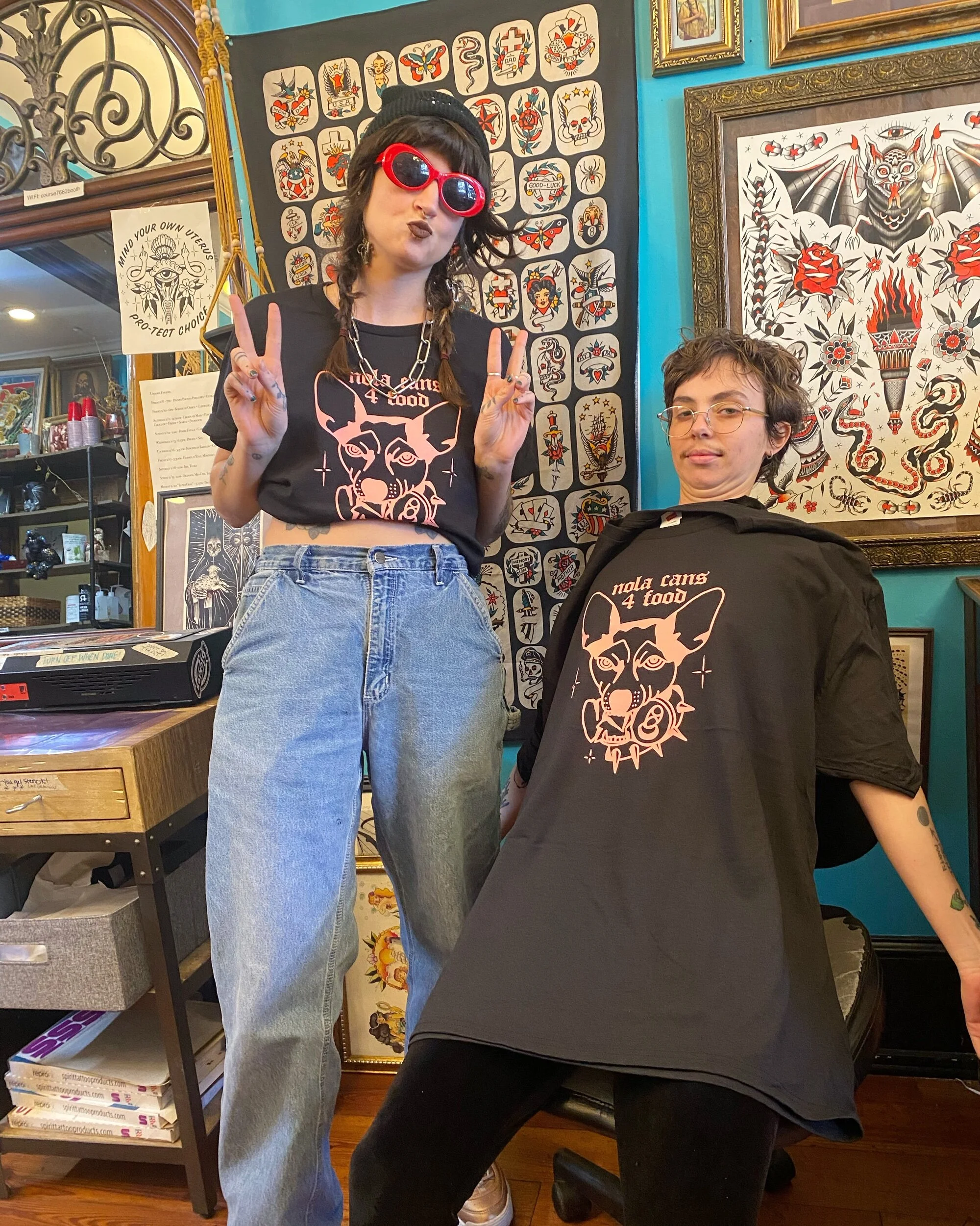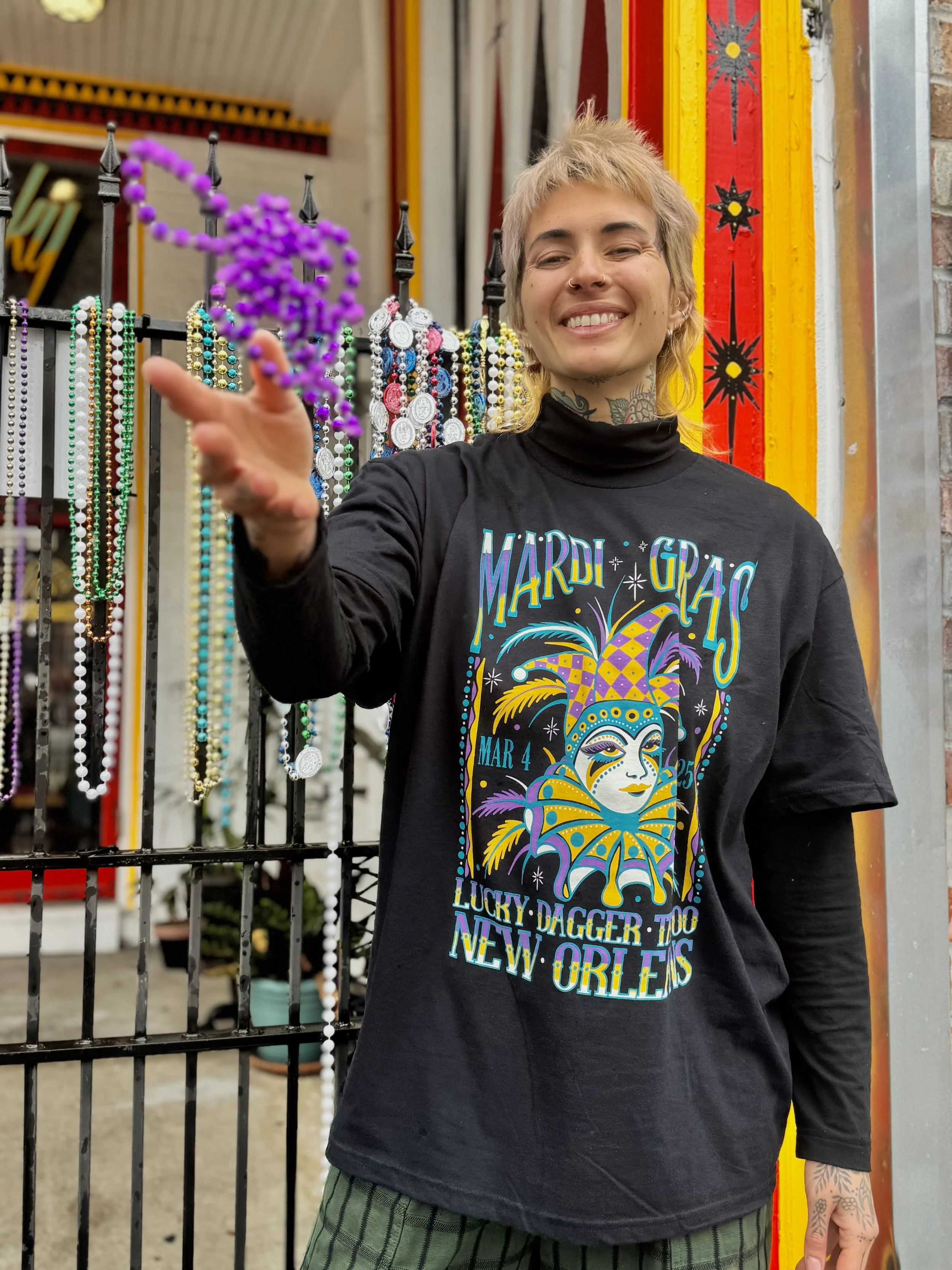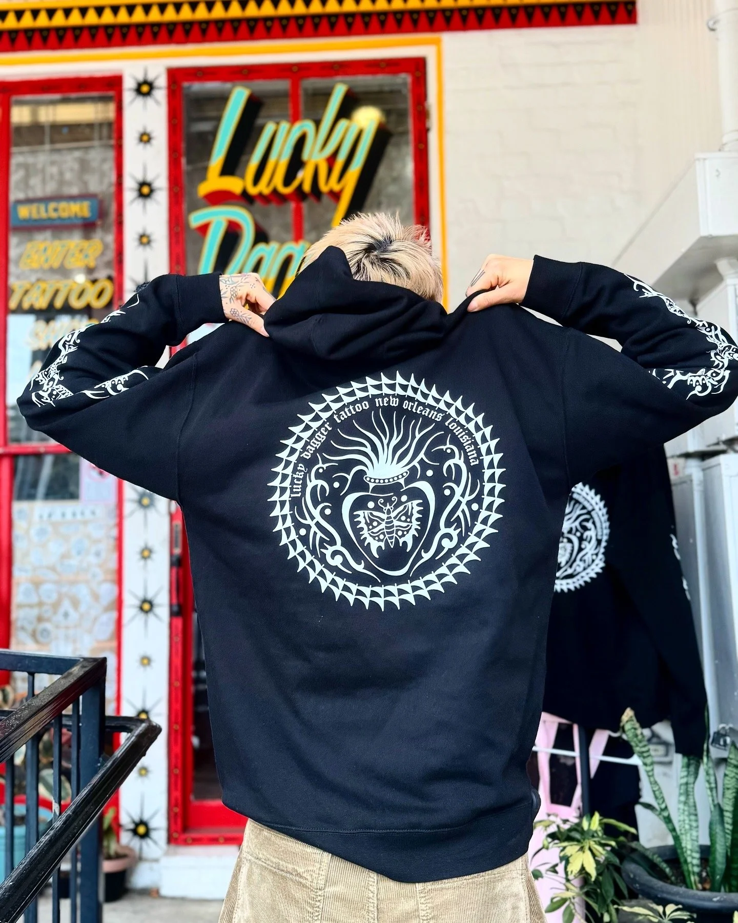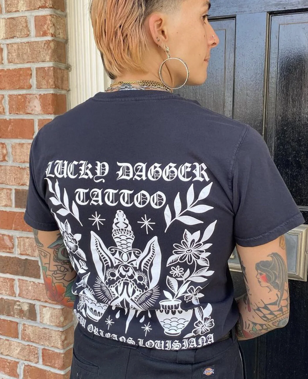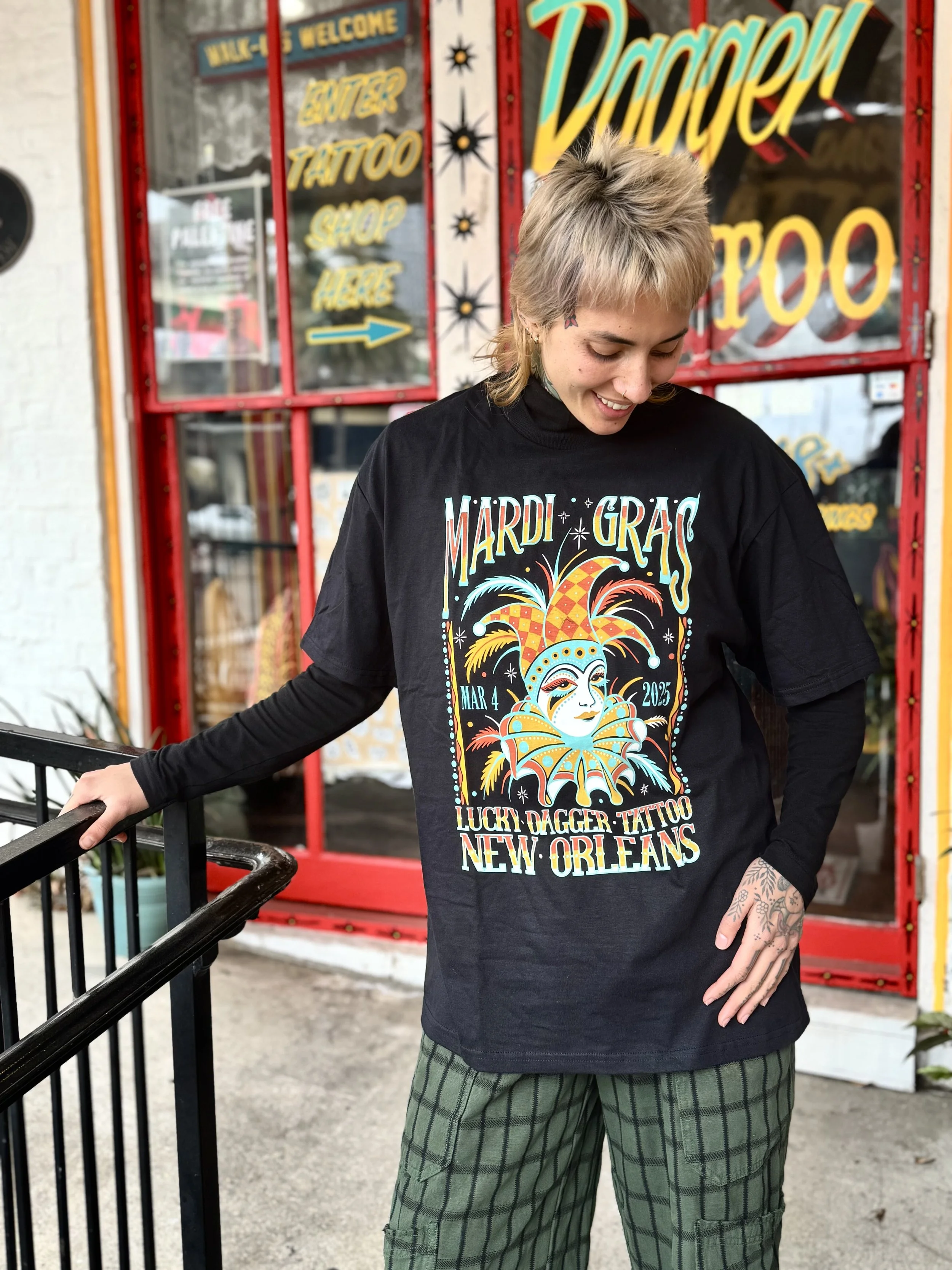 STORE 2025 BOOTY SHORTS $45.00 Jazz Tee $30.00 Vintage Style Mardi Gras Shirt (Classic Mardi Gras Colors) $30.00 Vintage Style Mardi Gras T- Shirt (Orange and turquoise) $30.00 Vintage Style Mardi Gras Tee (Pink and Teal) $30.00 Sacred Heart Hoodie $50.00 Lucky Dagger Snake/Dragon Tee $25.00 Scorpion Dolphin Shorts Sale Price: $20.00 Original Price: $30.00 Sold out Unisex Cobra Hanes Tank $30.00 11x15” JR Snake & Fan Print (*sliding scale*) from $25.00 Lucky Dagger Shorts $45.00 Lucky Dagger Sweat Pants from $40.00 Sale Nola Cans 4 Food - Frog & Gator Tee $25.00 Lucky Dagger Goat Dragon Hoodie $52.00 Lucky Dagger Goat Dragon T-Shirt $30.00 Lucky Dagger Gift Certificate for online merch ONLY from $50.00 Nola Cans 4 Food Grocery Bag $30.00 Nola Cans 4 Food t-shirt $20.00 Black Bat Heavy Cotton T-shirt $30.00 PRO-TECT CHOICE Donation T-Shirt $25.00 Sold out Lucky Dagger Gift Certificate for in-store purchases, i.e. tattoos $50.00 Chainlink Beanie $30.00 Sold out Lucky Dagger Tote Bag $18.00 MIND YOUR OWN UTERUS bumper sticker $1.00 Sold out Lucky Dagger Scorpion Print Bandana $7.00 Sold out Lucky Dagger Bat Print Tank Sale Price: $20.00 Original Price: $25.00 Sold out Lucky Dagger Scorpion Print Hoodie Sale Price: $45.00 Original Price: $55.00 Sale
